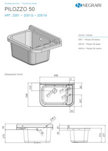 Negrari Pilozzo a Muro in Resina PP, Kit di scarico e di fissaggio inclusi, L50 x P34 x H21 cm, Grigio lucido