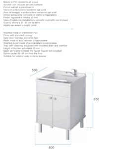 Negrari Lavatoio con piedini in Resina PVC per ambienti umidi, Kit di scarico incluso, L60 x P50 x H85 cm, Bianco