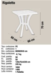 PAS Tavolino Quadrato con gambe a baionetta in Resina PP, per giardino e patio, Durevole e Testato da TUV Sud, L60xP60xH70cm