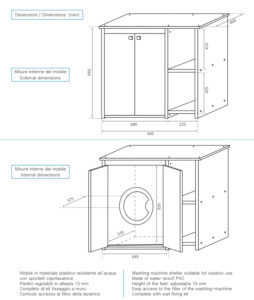 Negrari Coprilavatrice in Resina PVC, Con Scaffale laterale, Kit di fissaggio incluso, Interno/Esterno, L95 x P60 x H94 cm, Bianco