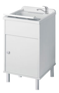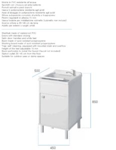 Negrari Lavatoio con piedini in Resina PVC per ambienti umidi, Kit di scarico incluso, L60 x P50 x H85 cm, Bianco