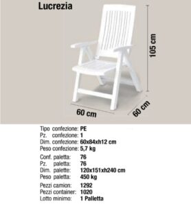 PAS Sedia Multiposizione in Resina PP, per giardino e Spiaggia, Durevole e Testata da TUV Sud, P60xP60xH105cm