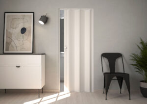 Forte Porta a Soffietto in PVC, Resistente agli urti, Riducibile, Kit completo, L88,5 x H214 cm, Bianco Pastello