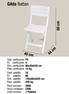 PAS Sedia pieghevole in Resina PP Rattan, per giardino ed Eventi, Durevole e Testata da TUV Sud, P40xP44xH80cm