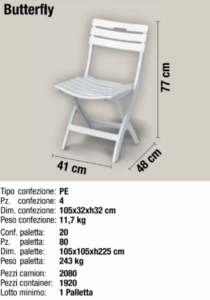 PAS Sedia pieghevole in Resina PP, Per giardino ed Eventi, Durevole e resistente al tempo, P41xP48xH77cm