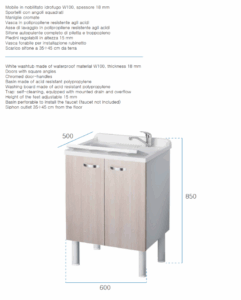 Negrari Lavatoio, Mobile in Nobilitato idrofugo con Vasca PP, Kit di scarico incluso, L60 x P50 x H85 cm, Olmo