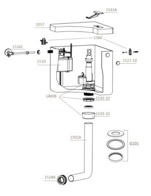 Galleggiante , Meccanismo di scarico, Tubo di scarico, kit di fisaggio |