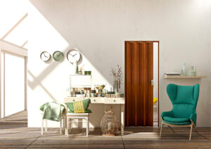 Le porte a soffietto “Elvira” sono realizzate con profili in PVC rigido senza l’utilizzo di sostanze nocive, particolarmente pratiche da pulire e sicure contro gli urti e le rotture. La porta ha dimensioni 87 larghezza x 222,5 altezza cm (riducibili secondo le esigenze) con binario di scorrimento di 120 cm. Di colore Ciliegio ma disponibile in molte altre finiture, è costituita da pannelli in PVC di 1 cm di spessore.