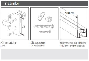 La porta viene fornita completa di serratura in alluminio, pomolo in ABS, kit di fissaggio e istruzioni di montaggio illustrate. Il prodotto è conforme alle normative CE, ISO 9001, ISO 14001, con inclusi 10 anni di garanzia. 100% Made in Italy.