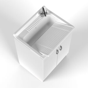 Mongardi Lavatoio in Resina PVC per ambienti umidi, Kit di scarico incluso, L60 x P60 x H85, Bianco