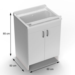 Mongardi Lavatoio da interno, Mobile in Nobilitato con Vasca PP, Kit di scarico incluso, L60 x P50 x H85, Bianco