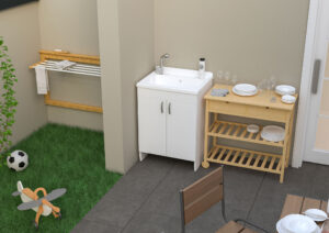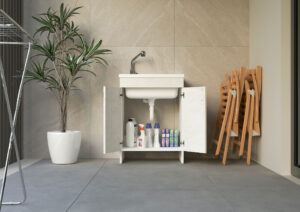Mongardi Lavatoio Salvaspazio in Resina PVC per ambienti umidi, Kit di scarico incluso, L40 x P40 x H85, Bianco