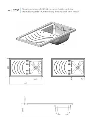 Negrari Vasca per lavatoio in Termoformatura, Dimensioni L45 x P60 x H25 cm