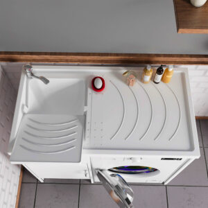 Negrari Lavatoio coprilavatrice in resina PVC, Reversibile, Kit di scarico e fissaggio inclusi, Interno/Esterno, L109 x P60 x H89 cm, Bianco