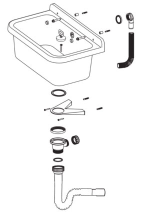 Kit di scarico (Scarico, piletta e troppopieno) e Kit di fissaggio (Viti e tasselli) |