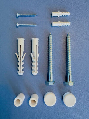 Kit di scarico (Scarico, piletta e troppopieno) e Kit di fissaggio (Viti e tasselli) |