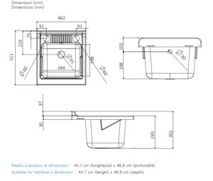 Negrari Vasca per lavatoio in Termoformatura, Dimensioni L45 x P60 x H25 cm