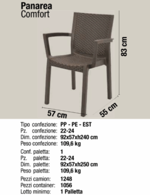 La sedia Panarea viene prodotta con polipropilene di alta qualità che le conferisce un’eccellente resistenza all’uso quotidiano e agli agenti atmosferici. Adatta per molteplici ambienti quali: sala da pranzo, soggiorno, patio, giardino e terrazze, è la sedia ideale per diverse tipologie di utilizzi. Insieme a tutta la linea Opera, la sedia è certificata TUV Sud garantendo così un livello qualitativo ben definito e testato da un laboratorio specializzato. Grazie ad un processo di produzione eco-compatibile che utilizza materiale riciclato, i prodotti di Opera Plastica sono 100% Made in Italy e sono ideati nel rispetto dell’ambiente