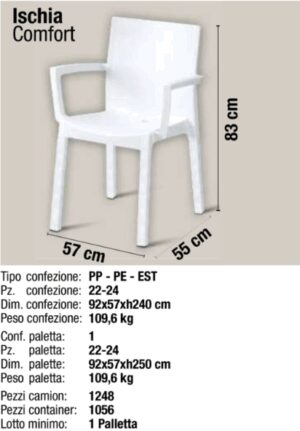La sedia Ischia viene prodotta con polipropilene di alta qualità che le conferisce un’eccellente resistenza all’uso quotidiano e agli agenti atmosferici. Adatta per molteplici ambienti quali: sala da pranzo, soggiorno, patio, giardino e terrazze, è la sedia ideale per diverse tipologie di utilizzi. Insieme a tutta la linea Opera, la sedia è certificata TUV Sud garantendo così un livello qualitativo ben definito e testato da un laboratorio specializzato. Grazie ad un processo di produzione eco-compatibile che utilizza materiale riciclato, i prodotti di Opera Plastica sono 100% Made in Italy e sono ideati nel rispetto dell’ambiente