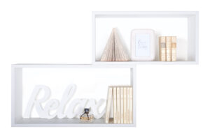 Il set di mensole Bis Rettangolo Bislungo è costituito in fibra di legno con finitura rivestita e ha dimensioni: 70L x 20P x 35H cm e 60L x 20P x 30H cm. Le mensole sono state ideate per il fissaggio a muro con taglio a 45%, per garantire maggiore stabilità e resistenza nel tempo. Grazie allo spessore di 1,8 cm e una portata massima di 10Kg, è il prodotto ideale per organizzare libri, CD , giochi di carte o altri oggetti di uso quotdiano. L’articolo è fornito già montato.