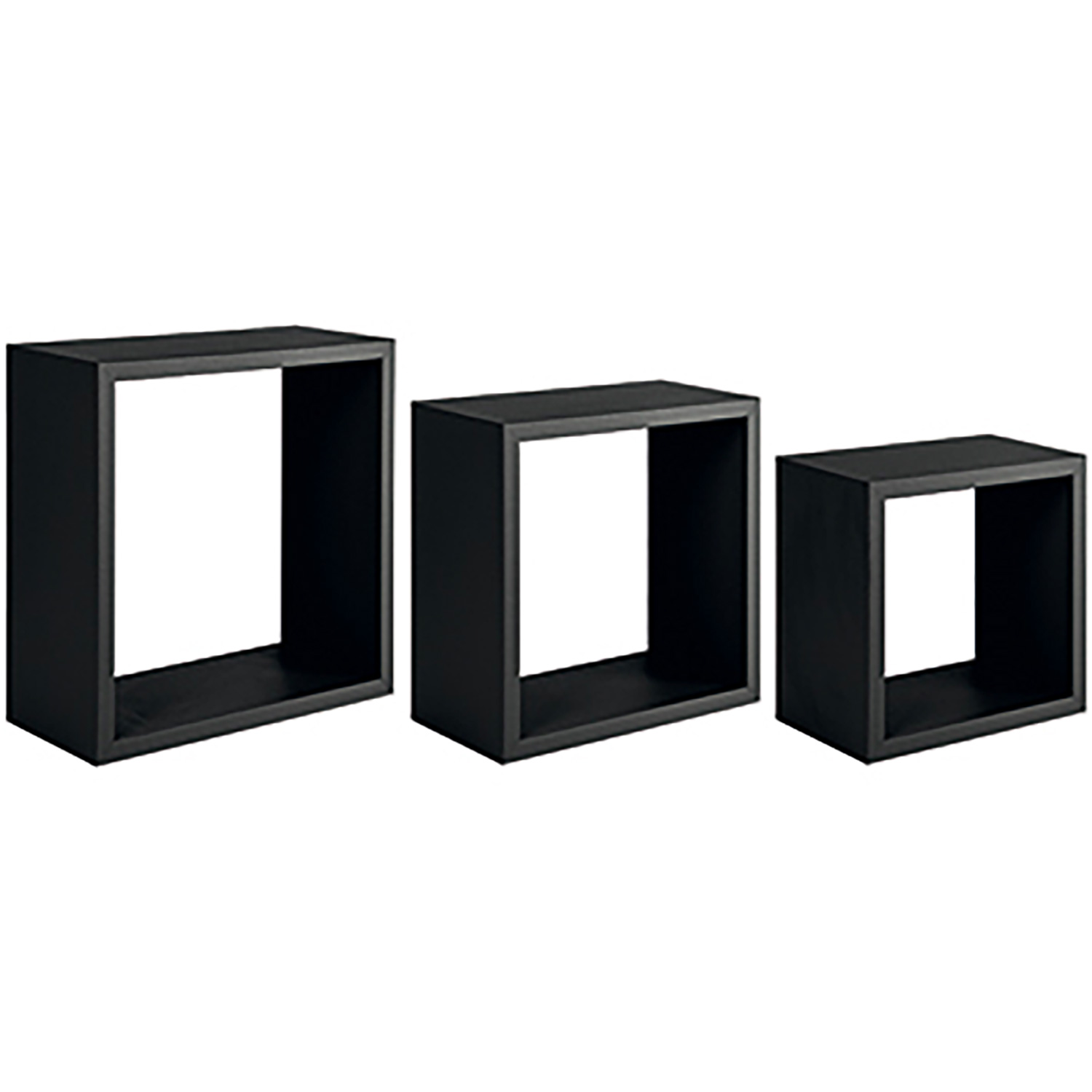 Sanitec Set Mensole Incubo da Parete, 35 x 35, 30 x 30, 25 x 25, p15,5 cm, Nero