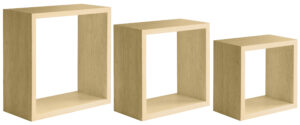 Il set di mensole Incubo è costituito in fibra di legno con finitura rivestita e ha dimensioni: 35L x 15,5P x 35H cm, 30L x 15,5P x 30H cm e 25L x 15,5P x 25H cm. Le mensole sono state ideate per il fissaggio a muro con taglio a 45%, per garantire maggiore stabilità e resistenza nel tempo. Grazie allo spessore di 1,8 cm e una portata massima di 10Kg, è il prodotto ideale per organizzare libri, CD , giochi di carte o altri oggetti di uso quotdiano. L’articolo è fornito già montato.