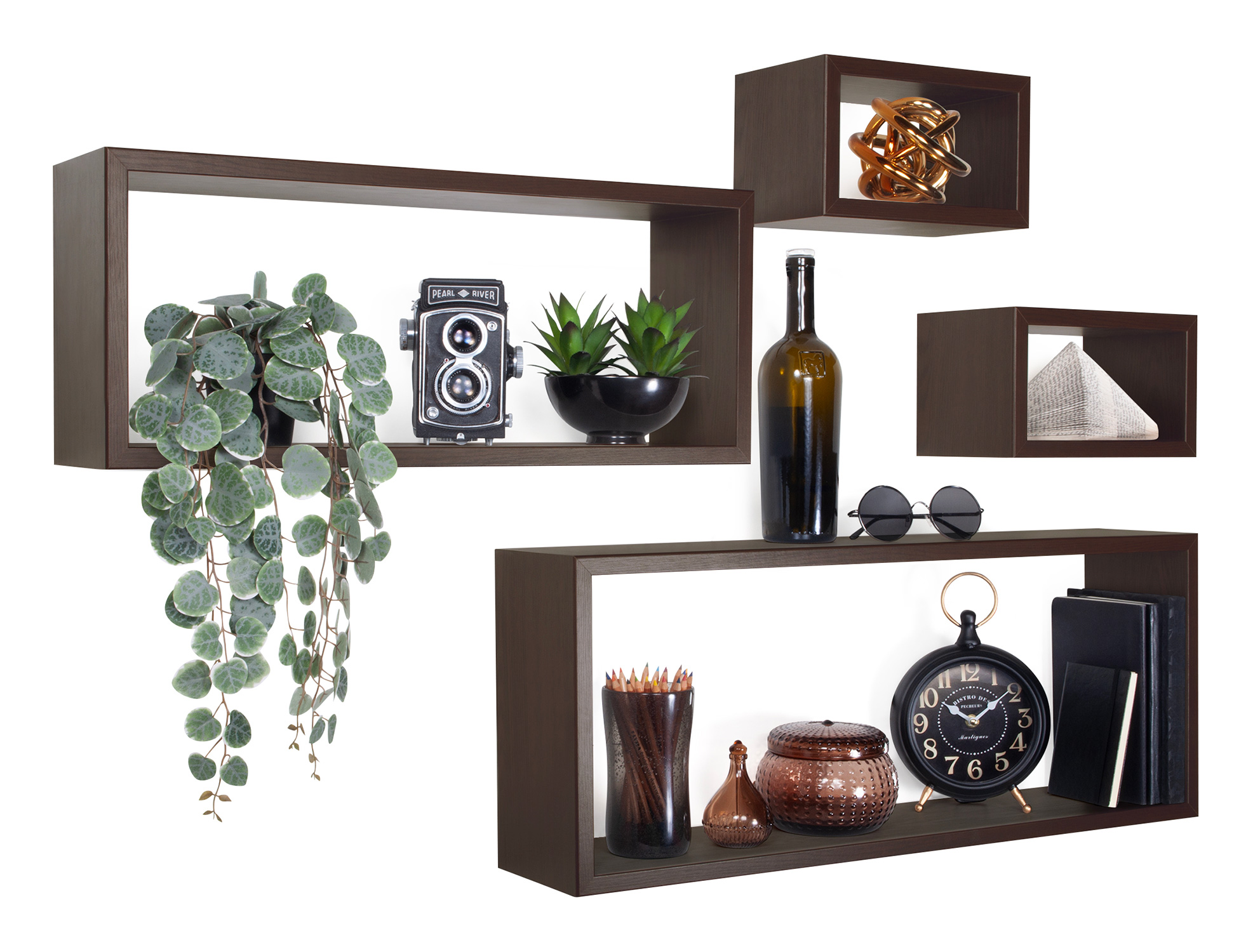Sanitec Set Mensole Merlino da Parete, 75 x 30, 60 x 25, 25 x 15 (x2) p15,5 cm, Wenge